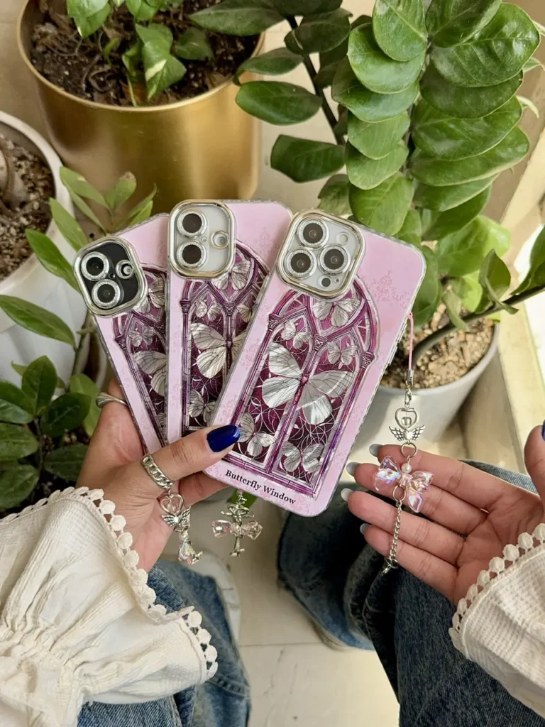قاب پاپیون سفید آینه ای آیفون و اندروید (کدC2024)