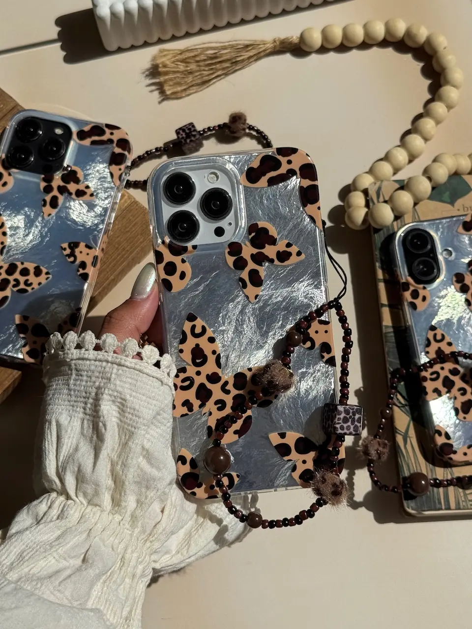 قاب پروانه با بال های پلنگی همراه با آویز (کدC2100)